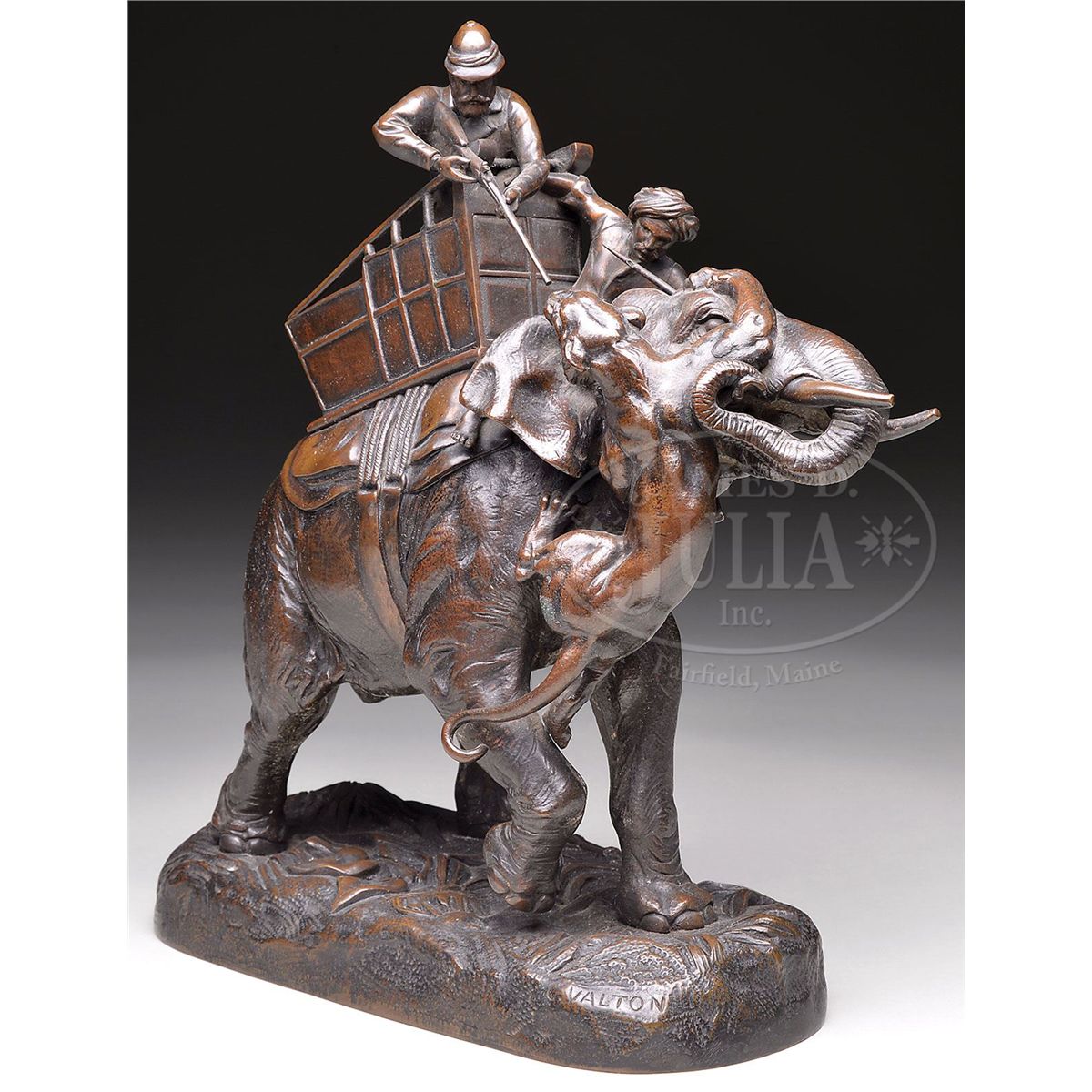 Bronze Signed "C. Valton" SIZE: 12" h x 9-1/2" l x 4-1/2" w. CONDITION: Very good with wonderful brown patina. 9-29709
