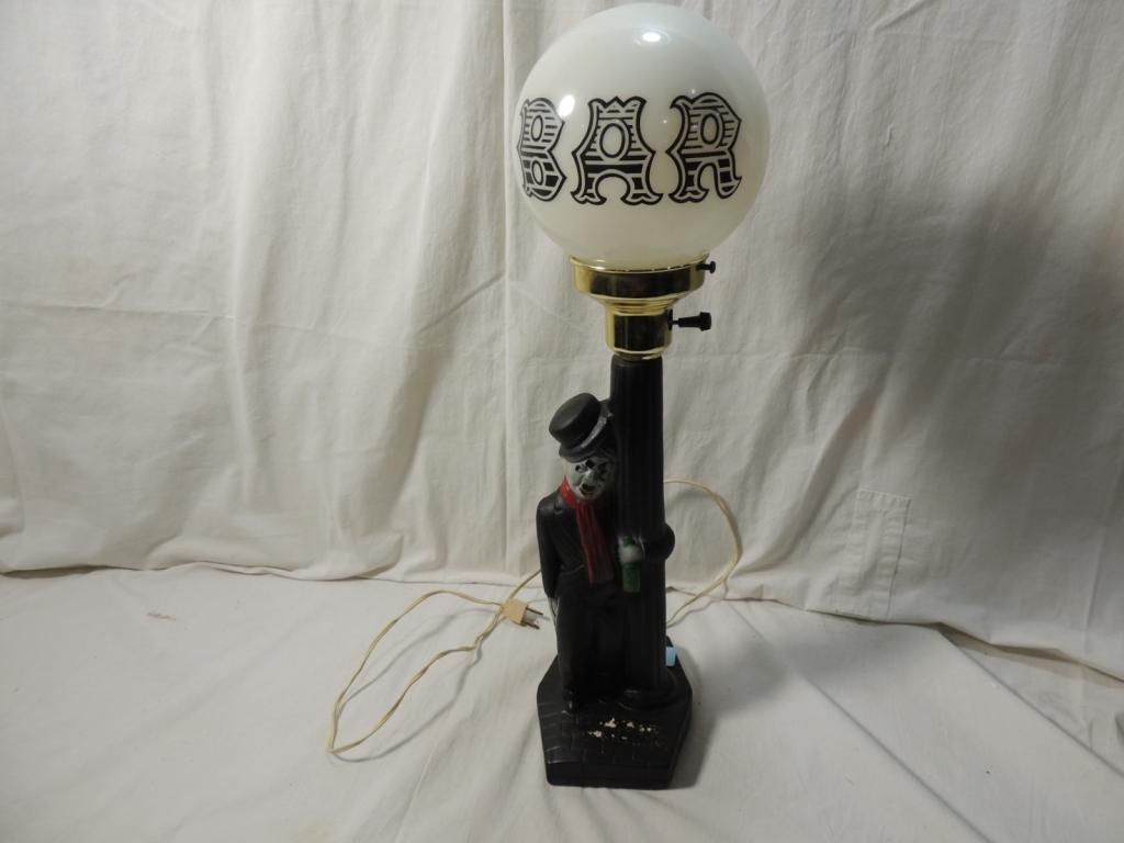 LUMIRAY CHARLIE CHAPLIN 1940S DRUNKEN HOBO MAN VINTAGE BAR POLE LIGHT CLOBE LAMP. AS SHOWN SEE PHOTO FOR MORE DETAILS.
