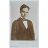 CHARLIE CHAPLIN. Youthful vintage 3.5 x 5.5 matte finish sepia tone half-length portrait, circa 1920, signed across his chest in black fountain pen. About fine condition, with light diagonal impressions to all four corners, a result of prior storage in a photograph album. Although penned against the dark fabric of his suit jacket, Chaplin's signature is quite readable