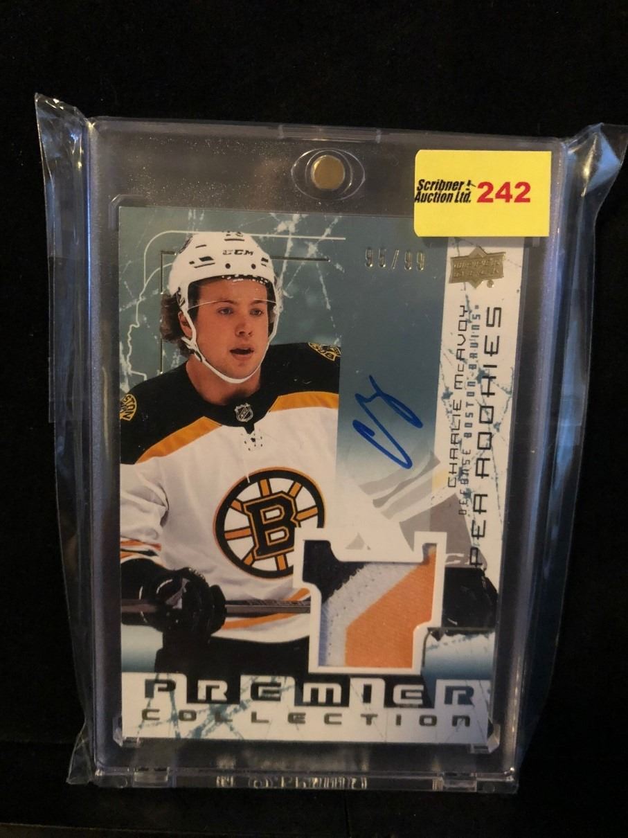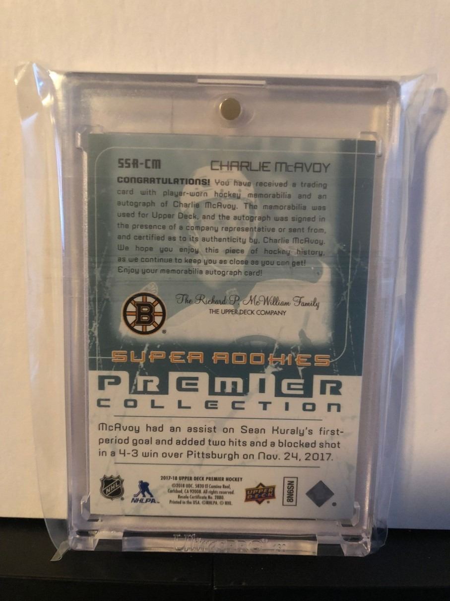CHARLIE McAVOY 2017-18 UD SUPER ROOKIES PREMIER COLLECTION AUTOGRAPH & GAME USED JERSEY 95/99