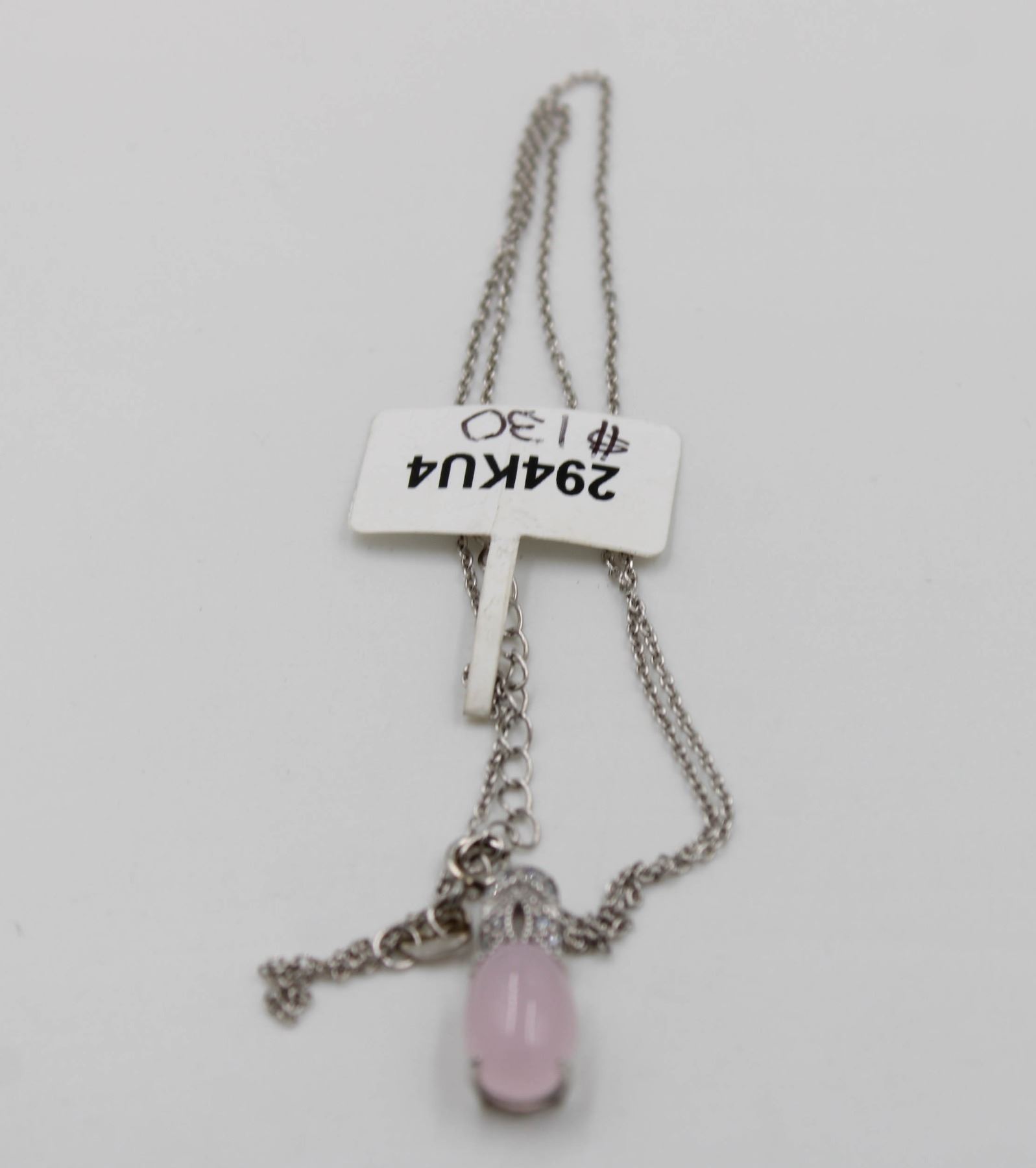 CHARMED AROMA OVAL PINK QUARTZ NECKLACE SS