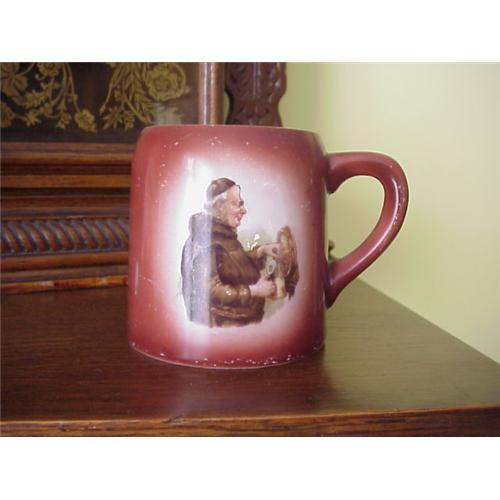 Charming old gentleman?s mug! This mug has the look of Royal Bayreuth with a jolly monk refilling his stein. The mug is in very nice condition, no chips or cracks , just a little wear to the finish ,otherwise just fine. It is a lovely colourful mug to enjoy displaying or giving as a gift-perfect for Father?s Day!