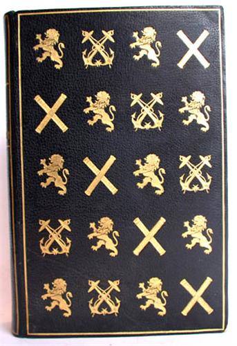 CHASSÉRIAU, F.- Vie de l'amiral Duperré, ancien ministre de la Marine et des Colonies, etc. Paris, Imprimerie Nationale, 1848. In-8° : frontisp., [4]-vii-[1]531 pp., 1 fac-similé d'autographe sur double f. dépliant et 1 tableau dépliant (qqs piqûres). Relié par Petit, successeur de Simier : plein maroquin noir, plats ornés d'un semé de lions rugissants, ancres marines et faisceaux croisés, dos lisse orné de même, doublures bord-à-bord de même maroquin ornées de grandes armoiries dorées, gardes volantes et doubles gardes de papier marbré, tranches dorées sur marbrures (coupes frottées avec pet. manque au coin inf. sup.).