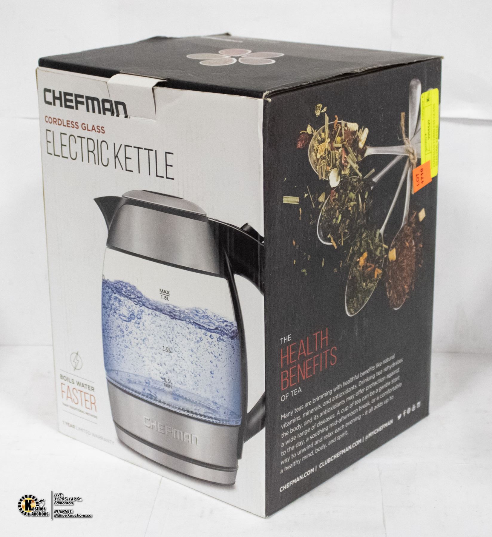 CHEFMAN CORDLESS GLASS ELECTRIC KETTLE