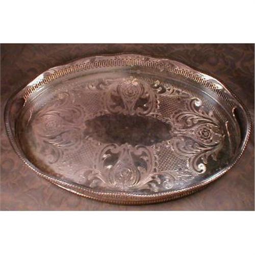 <tr><td>Title:CHELTENHAM Silverplate Tray OVAL w/ Gallery</td></tr>