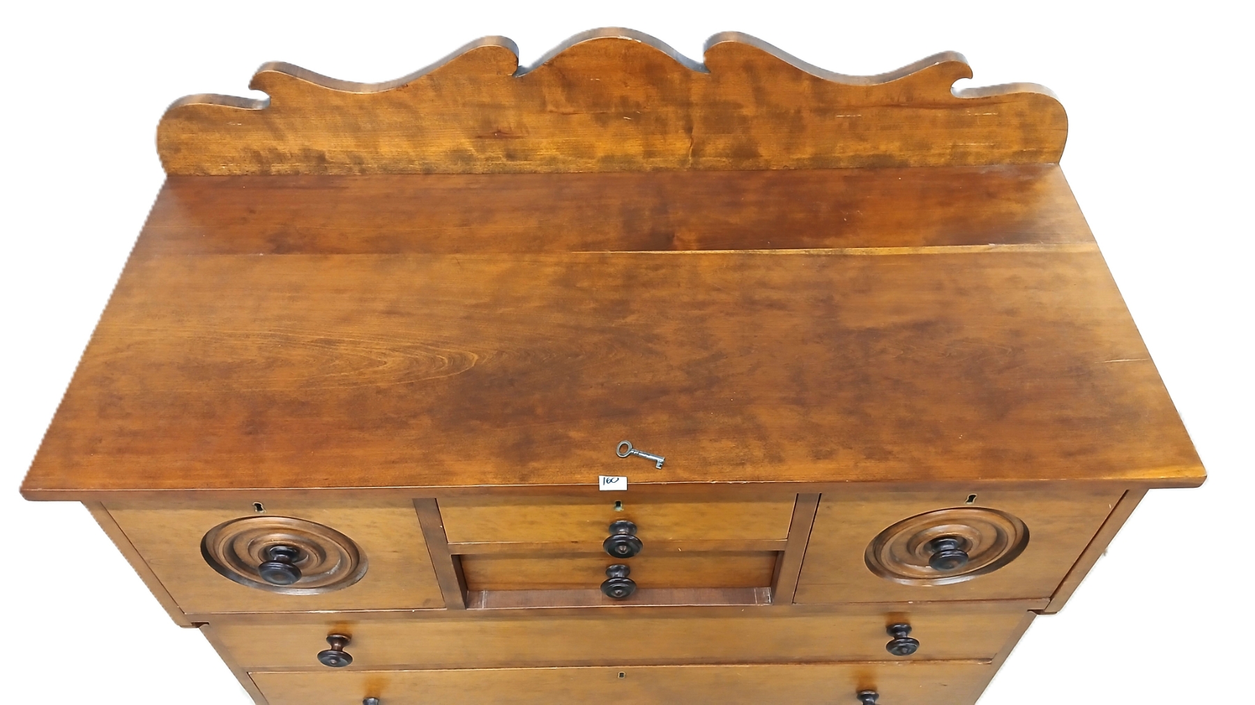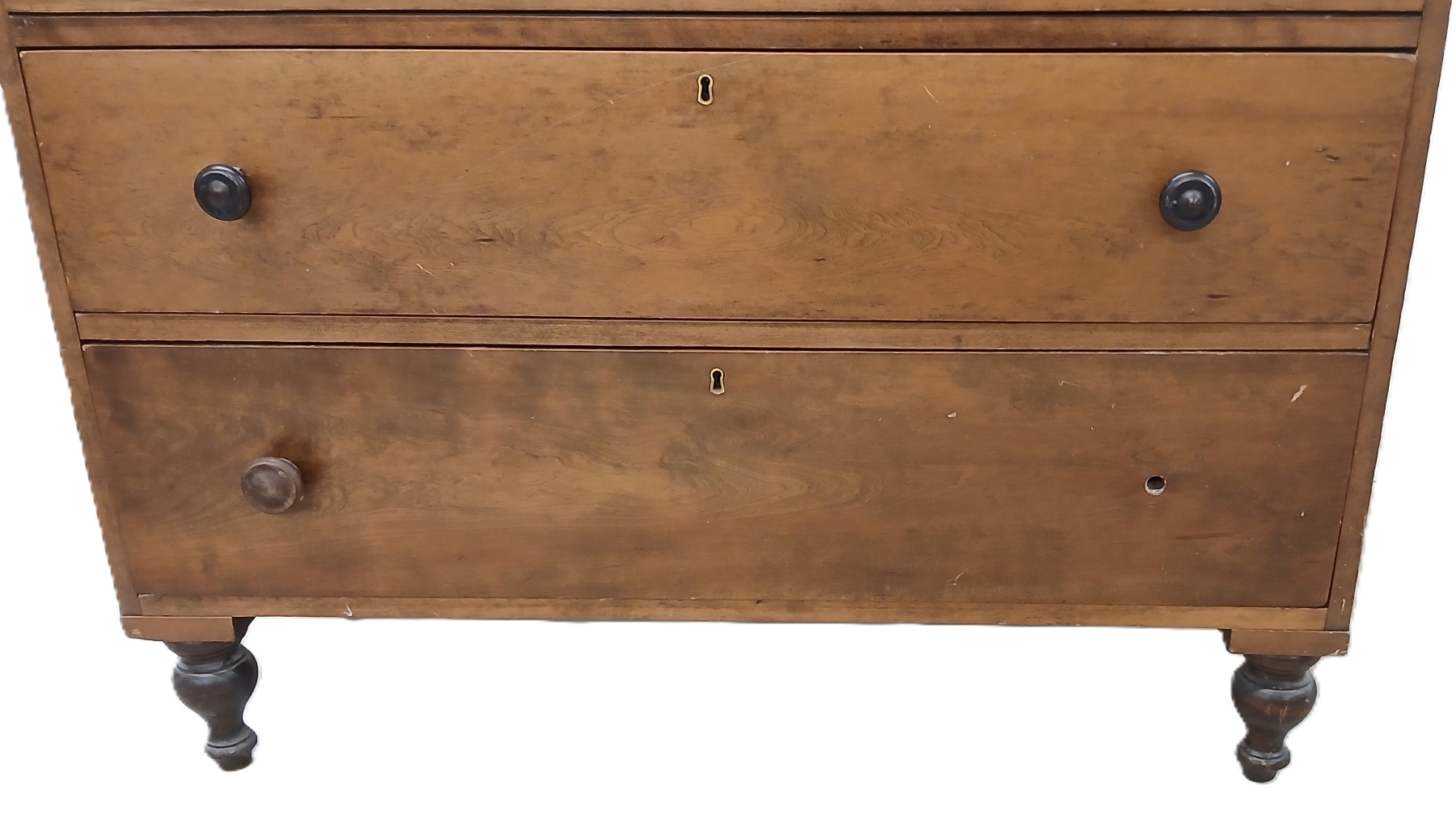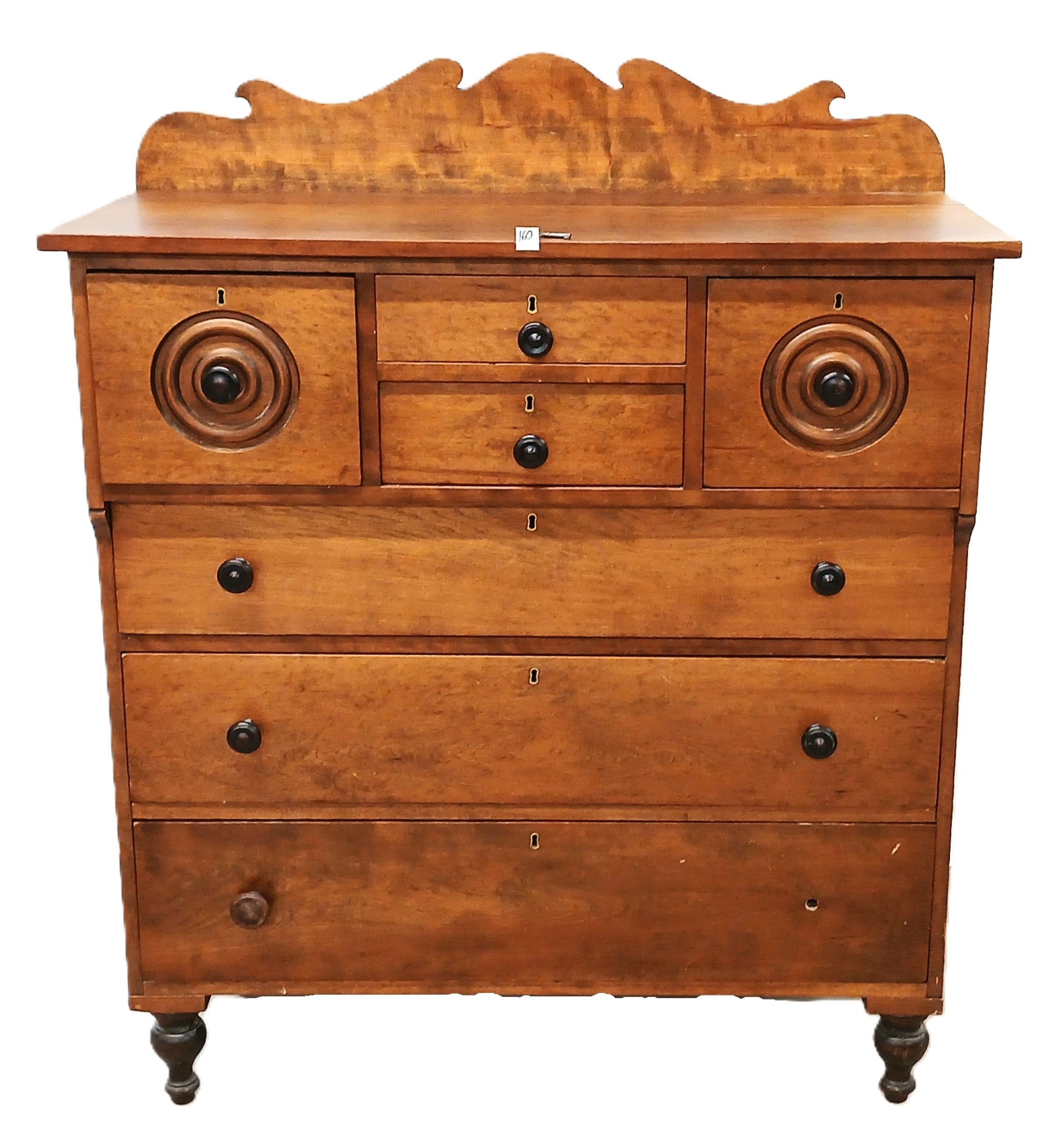 NOTE: 19 X 44 X 54IN - DOVE TAILED DRAWERS - SIGNS OF WEAR - LOOSE & MISSING KNOBS - SHIPPING ARRANGED BY BIDDER