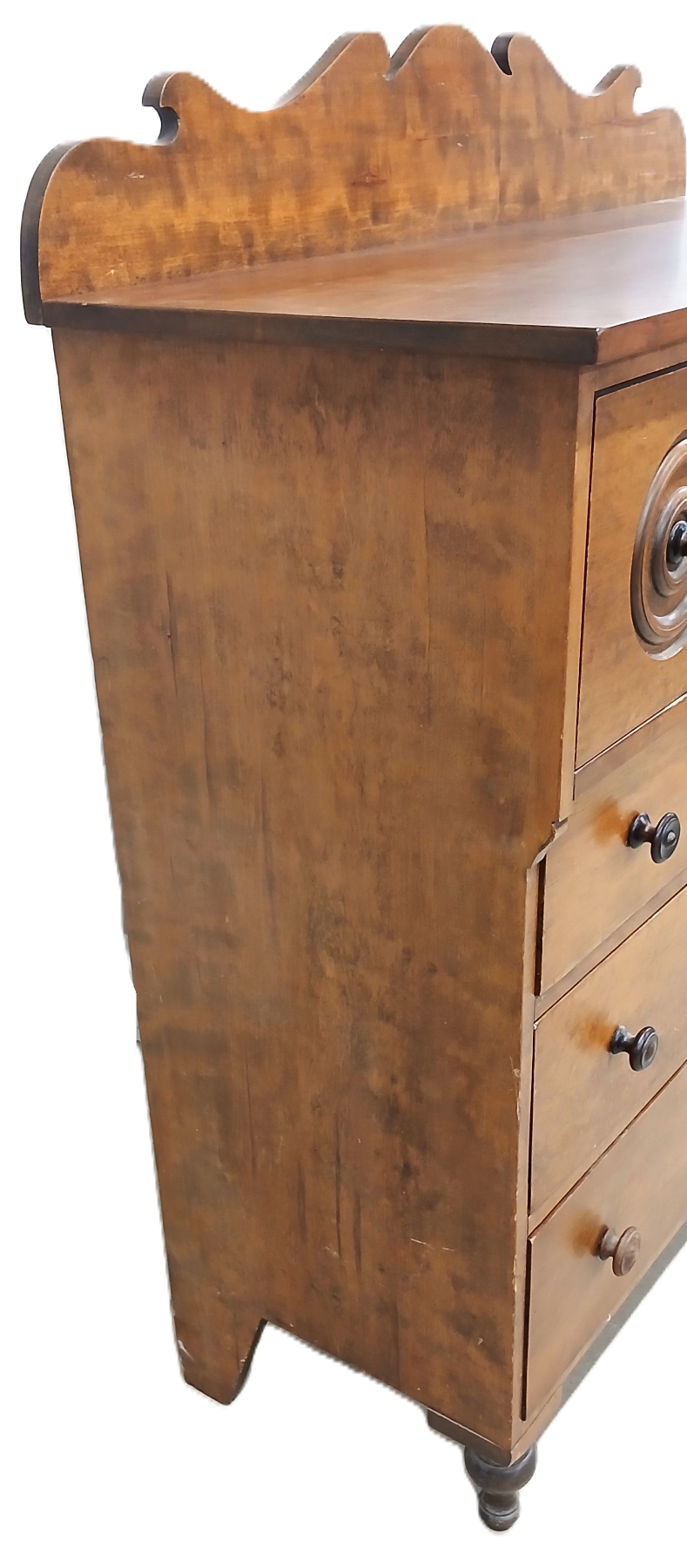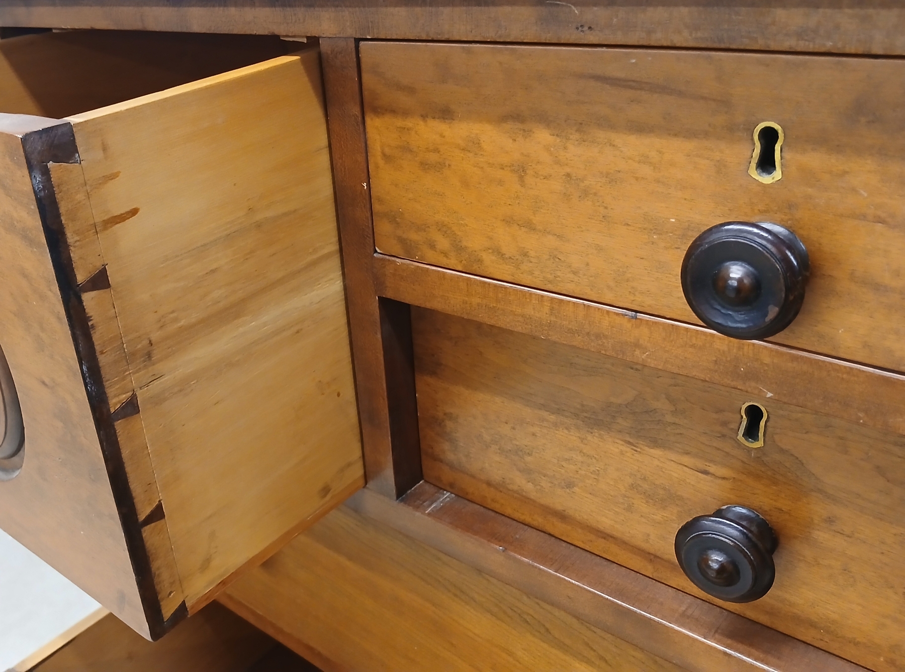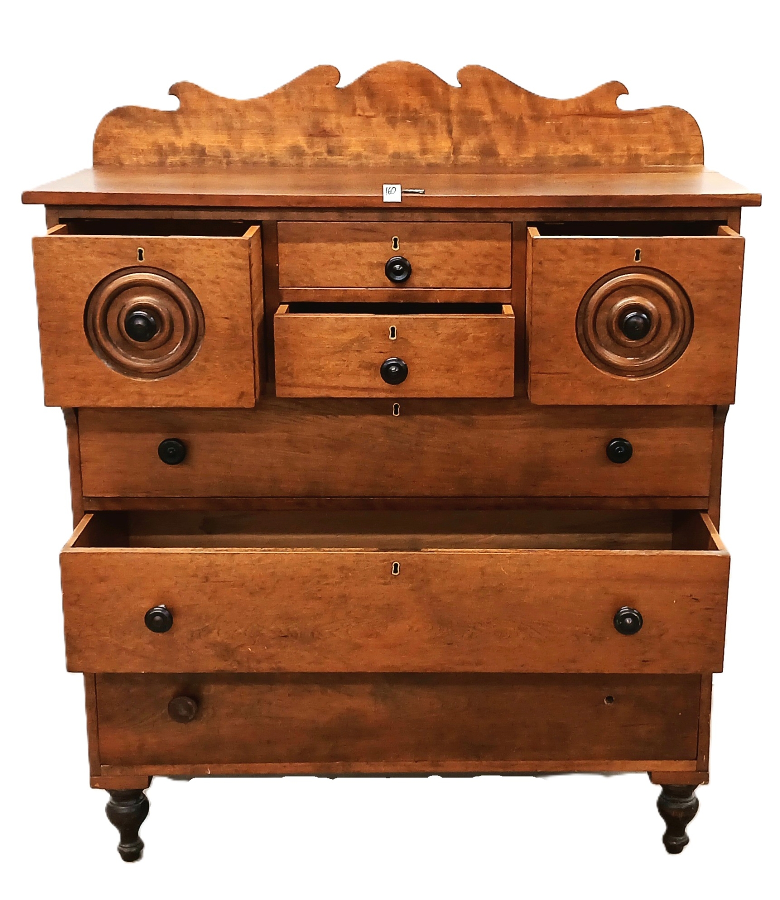 NOTE: 19 X 44 X 54IN - DOVE TAILED DRAWERS - SIGNS OF WEAR - LOOSE & MISSING KNOBS - SHIPPING ARRANGED BY BIDDER