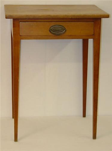 CHERRY COUNTRY HEPPLEWHITE 1 DRAWER STAND W/ OVERHANGING TOP & SQUARE TAPERED LEGS (TOP= 18 1/2" X 22", 28" TALL) - REPAIRS & IMPERFECTIONS