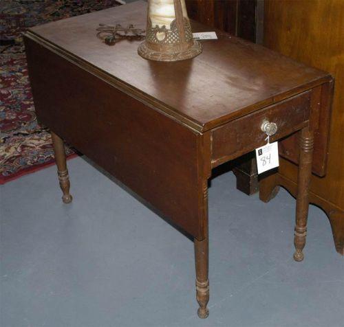CHERRY DROPLEAF FARM TABLE with drawer 39" long, 19th century, CONDITION: gouge to one leaf,