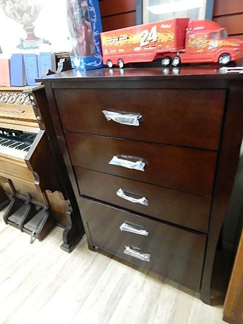 CHERRY FINISH 5 DRAWER HIGH BOY DRESSER