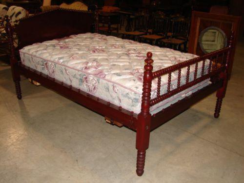 CHERRY JENNY LIND SPOOL BED. Has mattress. 41” H, 48” W