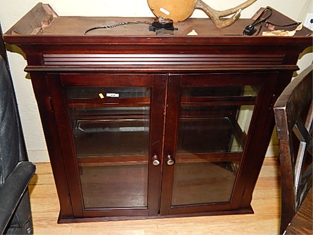 CHERRY WOOD CURIO CABINET - NEW - LIGHTS - (as-is)