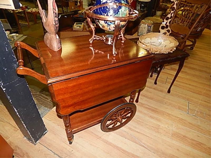 CHERRY WOOD TEA CART WITH DROP LEAFS