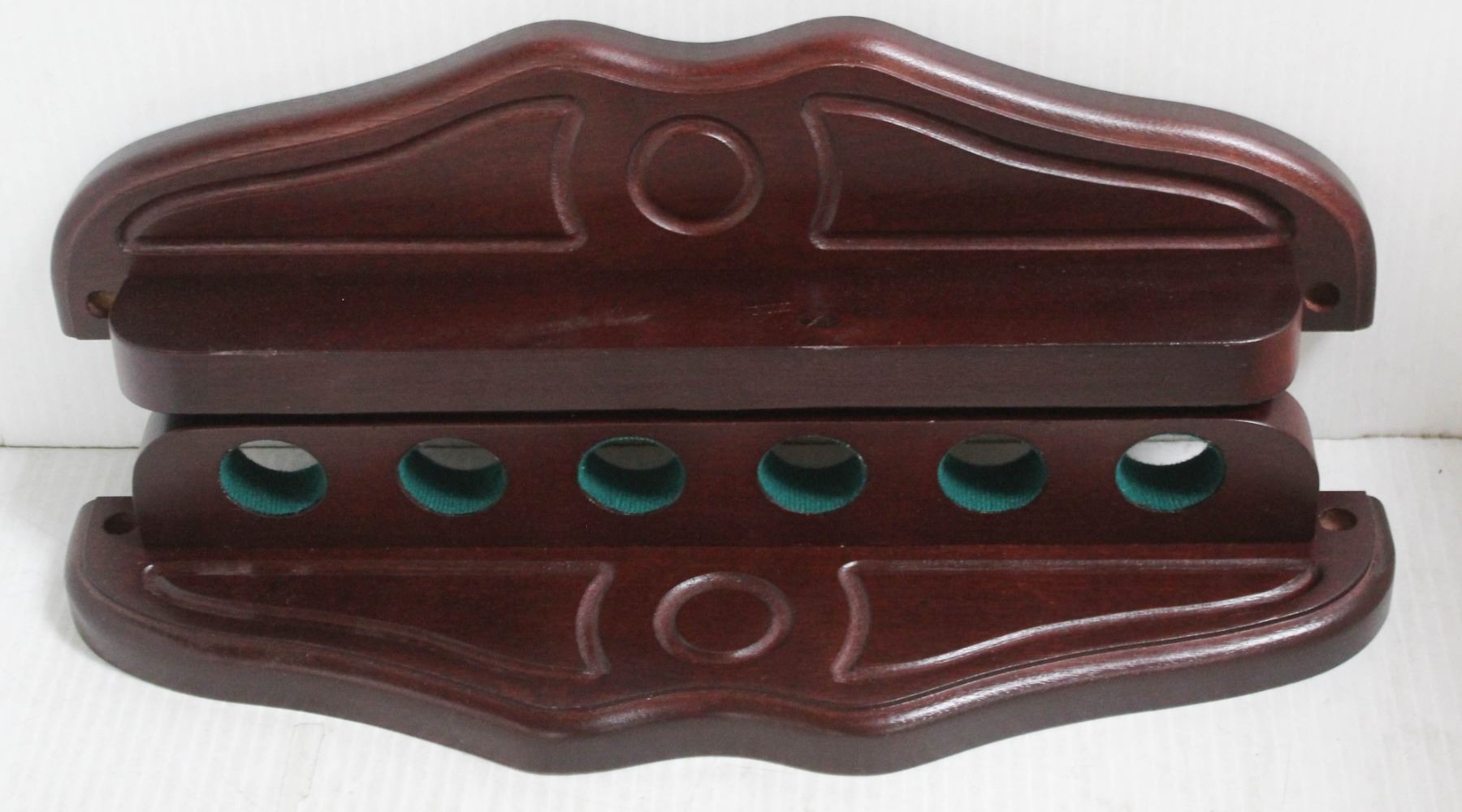 CHERRY WOOD TONE- 2PC 6 SLOT POOL CUE WALL RACK