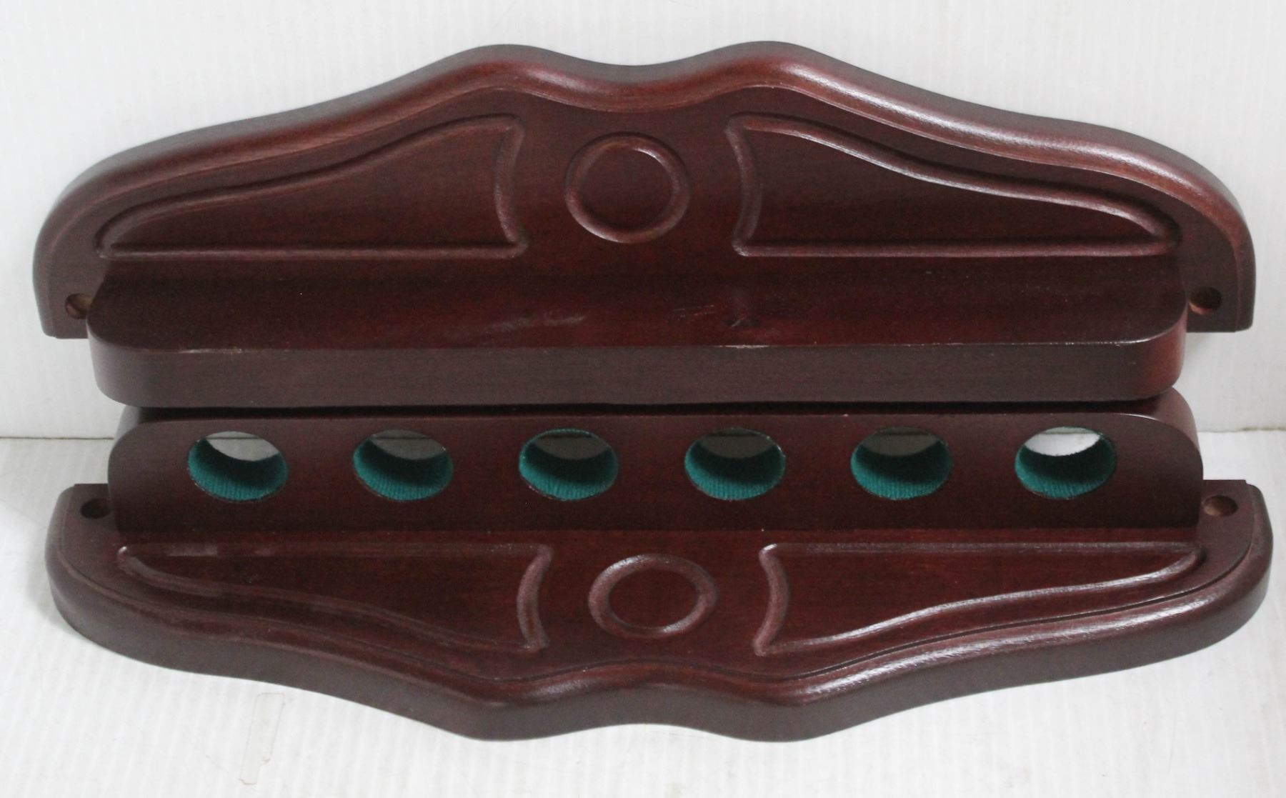 CHERRY WOOD TONE- 2PC 6 SLOT POOL CUE WALL RACK