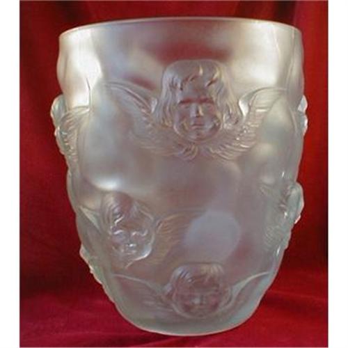 Frosted glass vase or wine bucket covered with seraphim. Made in the style of Verlys and Lalique glass.