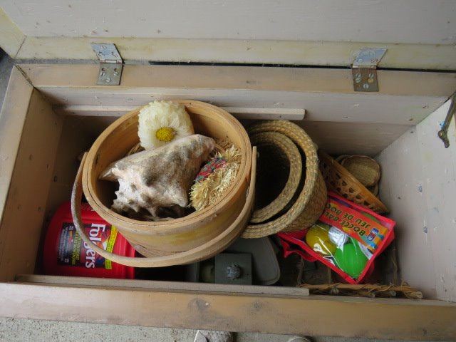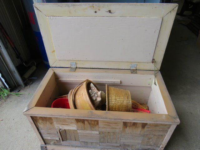 CHEST WITH ASSORTED CONTENTS (LOTS OF GOODIES) * 29.5" X 17" X 16"*