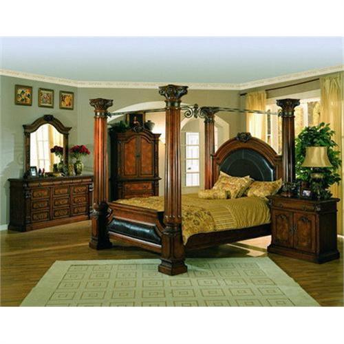 <tr><td>Title:CHESTNUT FINISH KING SIZE POSTER CANOPY BED </td></tr>