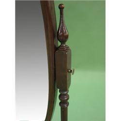 CHEVAL LADIES DRESSING MIRROR. Beveled mirror. Mahogany frame and stand. 60" H, 25" W