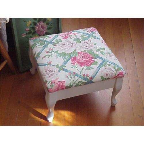 <tr><td>Title: CHIC ROSES BARKCLOTH FOOT STOOL</td></tr>