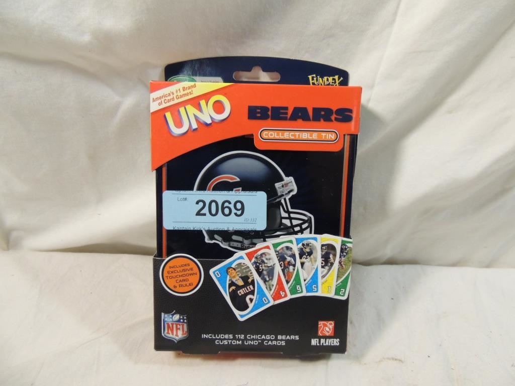 UNO CARD GAME CHICAGO BEARS EDITION, COLLECTIBLE TIN, AS SHOWN SEE PHOTO FOR MORE DETAILS.