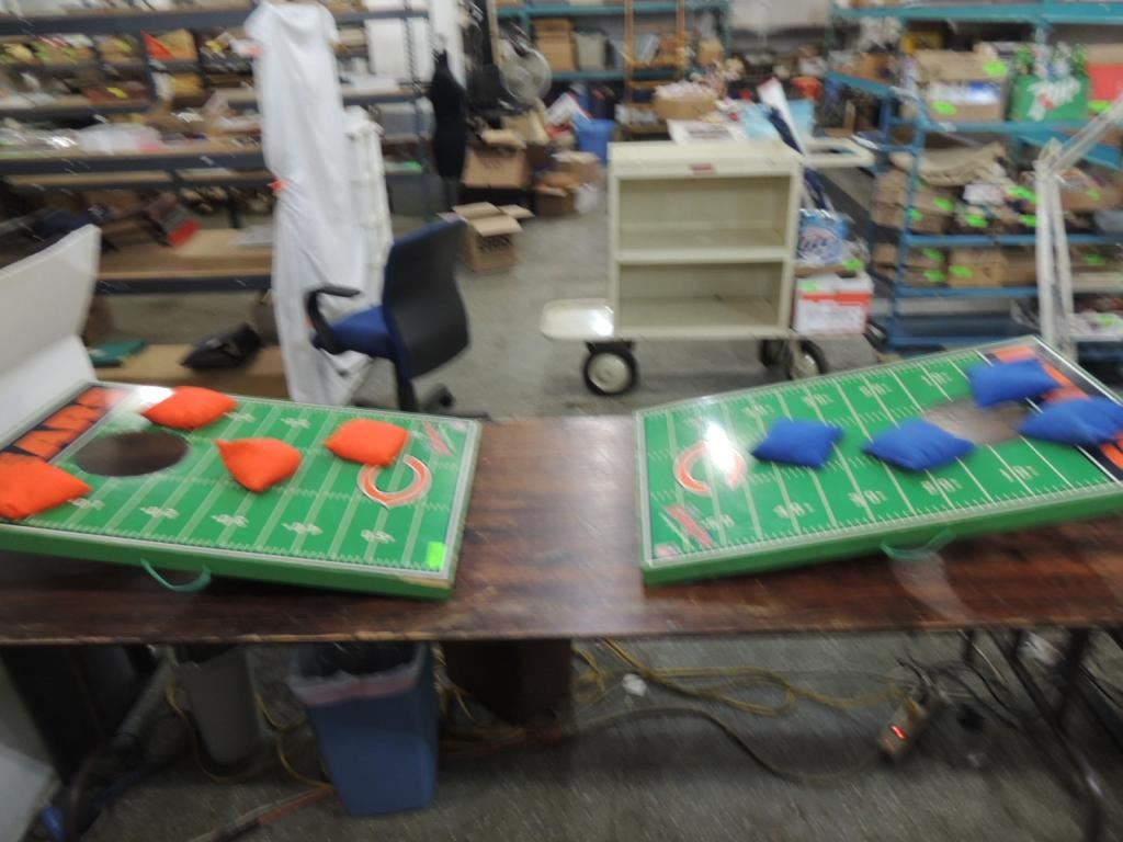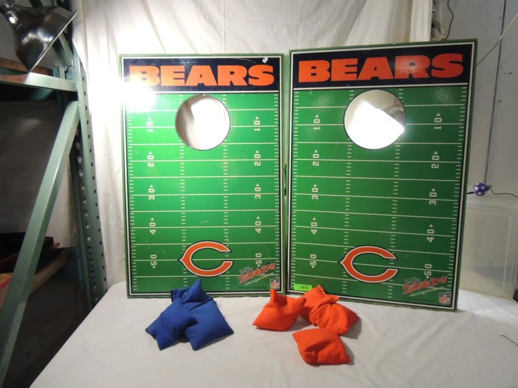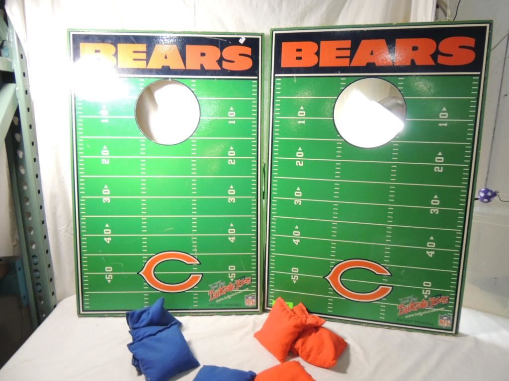 THE ORIGINAL BEAN BAG TAILGATE TOSS GAME CHICAGO BEARS, CORNHOLE TOSS, BACKYARD GAME, BEANBAG, OUTDOOR GAME, WOODEN PAINTED RED AND BLUE BAGS INCLUDED AS SHOWN SEE PHOTO FOR MORE DETAILS.