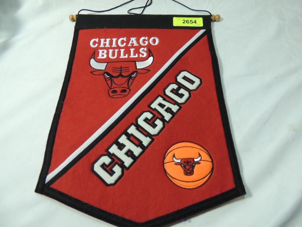 CHICAGO BULLS FELT BANNER. CHICAGO BULLS DECOR. COLLECTIBLE. FELT BANNER. WALL HANGING. BASKETBALL AS SHOWN .