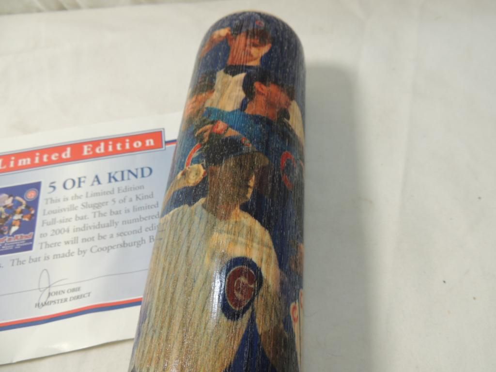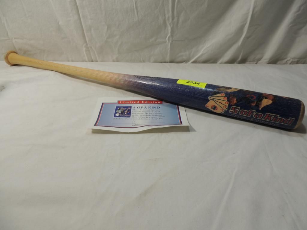 LIMITED EDITION. LOUISVILLE SLUGGER 5 OF A KIND FULL SIZE BAT. LIMITED TO 2004 INDIVIDUALLY NUMBERED. BAT 0892 OF 2004 COA INCLUDED. AS SHOWN SEE PHOTO FOR MORE DETAILS.