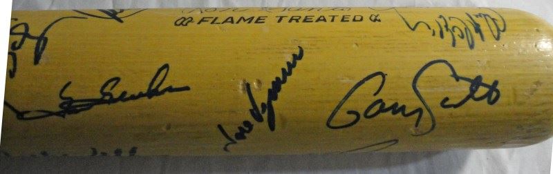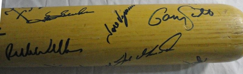 CHICAGO CUBS AUTOGRAPHED BAT, BILLY WILLIAMS, RON SANTO, MARK GRACE