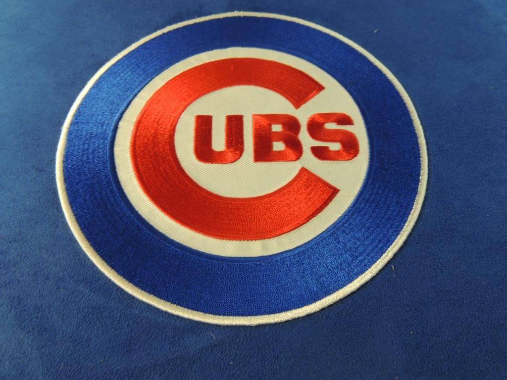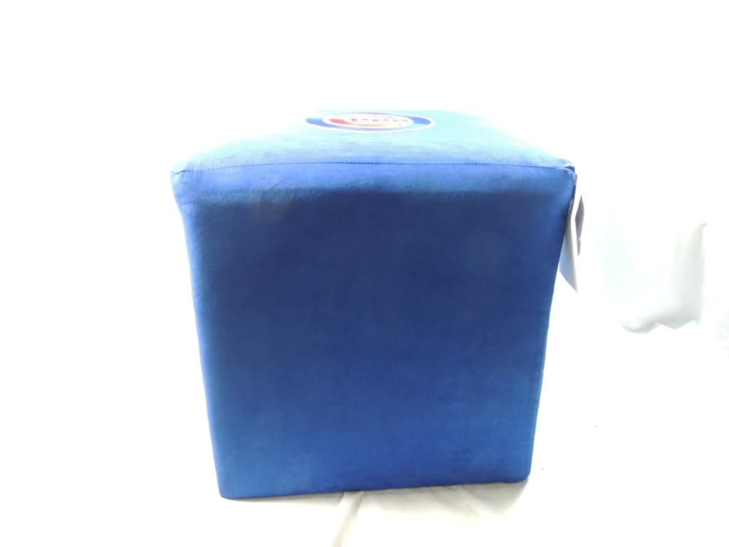 CHICAGO CUBS LIKE NEW CUBE OTTOMAN. WITH TAGS. SEE PHOTO FOR DETAILS. AS SHOWN.