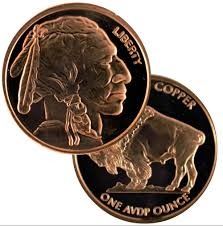 CHIEF BUFFALO 1oz Copper 999 Fine Copper Coin MS High Grade