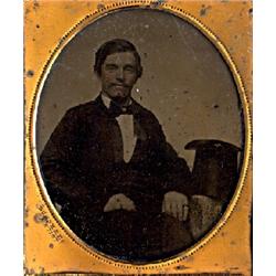 Just about flawless example of this case. Has “Wm. Snell/ Artist/ Salem” embossed on the red velvet pad. 1/6 plate ambrotype has “Dunshee/ Artist” stamped on the mat.