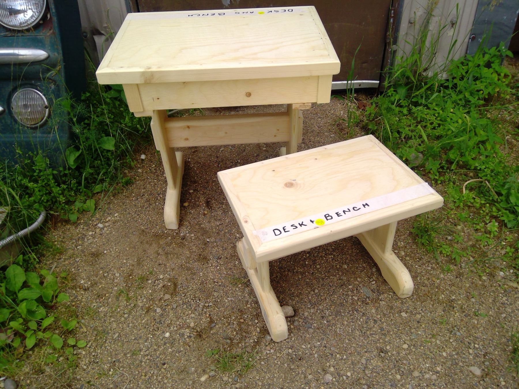 CHILD'S DESK AND BENCH (20 1/2 X 14 3/4 X 20" H)