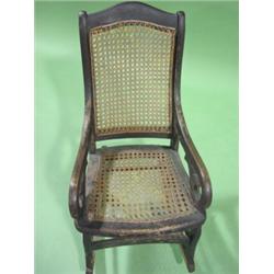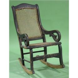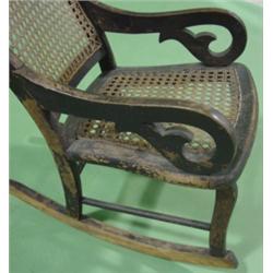 CHILD'S OVERPAINTED ARMED ROCKER. Cane back & seat. Overpainted with black paint. 26.5" H to top of back, 14.5" W
