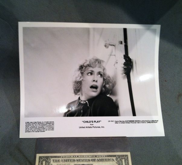 This is an original Studio Issue black and white publicity shot from Child's Play 1. Some of these originally came from Press Packs, whilst others are much harder to find as fewer were made for critic packs as hand outs before or after a screening.