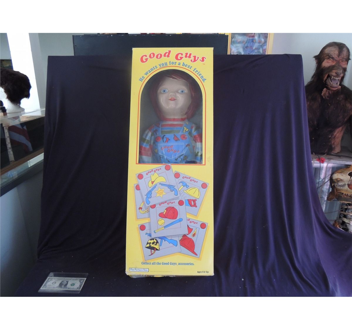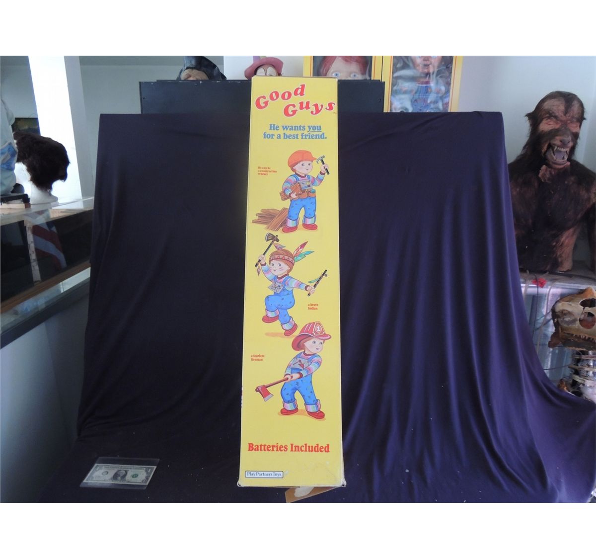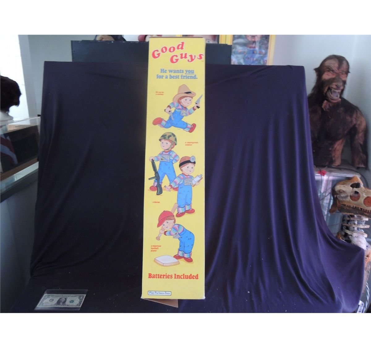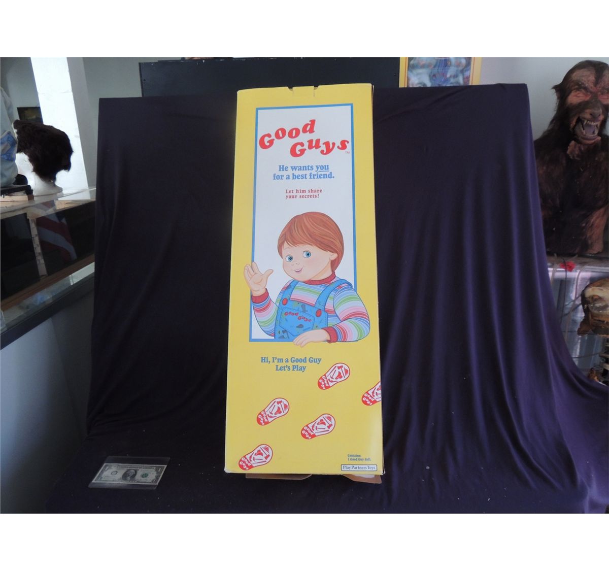 Offered here is an original Good Guys doll box Screen Used in Child's Play 1. This is one of the window boxes that has the plastic insert inside it. Part 1 boxes are actually a bit wider, and a bit shallower than part 2 boxes.