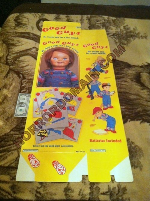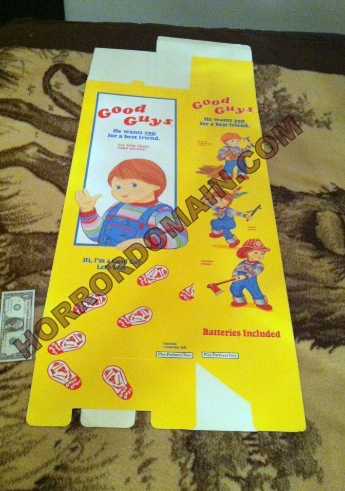 Offered here is a near mint condition original unfolded Good Guys doll box Screen Used in Child's Play 2. The best of the first 3 films. You can see this in a short stack of unfolded boxes on a palate in the factory scenes.