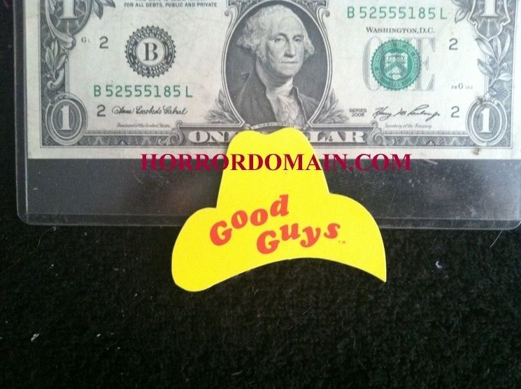 This is a rare Child's Play Chucky Good Guys Cowboy hat sticker.