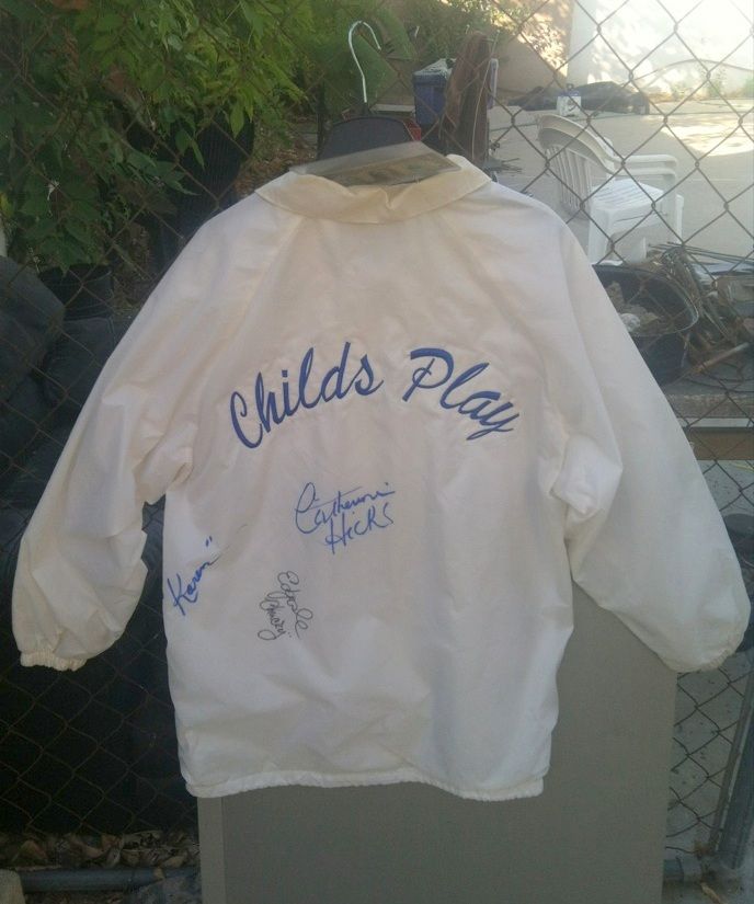This is the only cast jacket known to exist from the original CHILD'S PLAY movie signed by Catherine Hicks and Ed Gale. An incredible find!