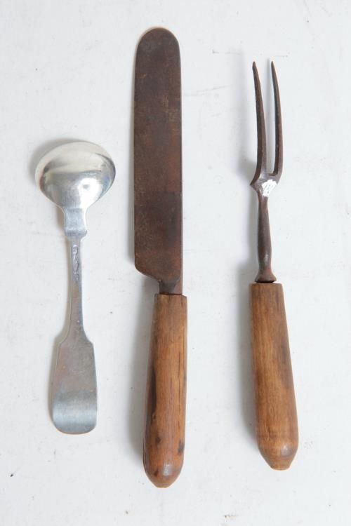 CHILD'S REVOLUTIONARY WAR ERA 2 PRONG FORK, KNIFE SPOON