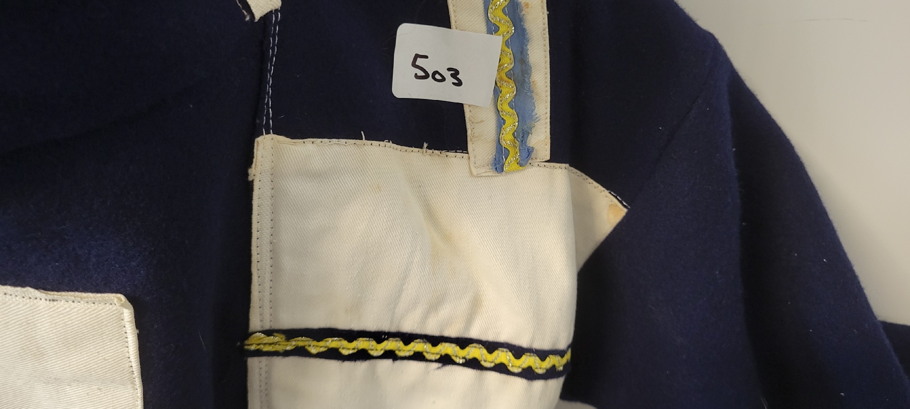 NOTE: APPROX 18 X 23IN W/OUT HOOD - MED SZ - WOOL W/ LEATHER - STAINING & WEAR
