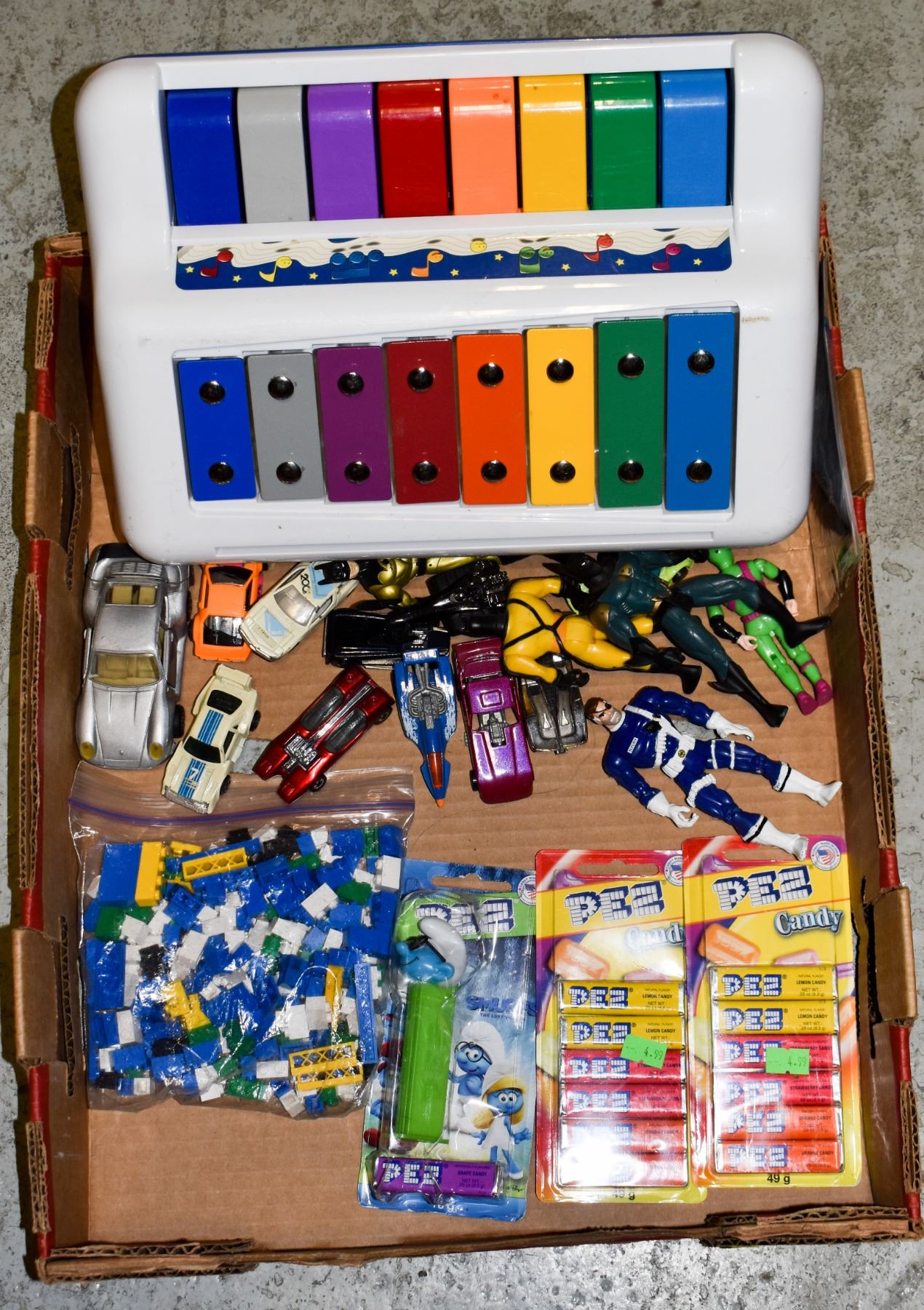 CHILDREN'S TOY LOT INCLUDES PEZ, LEGO & HOTWHEELS