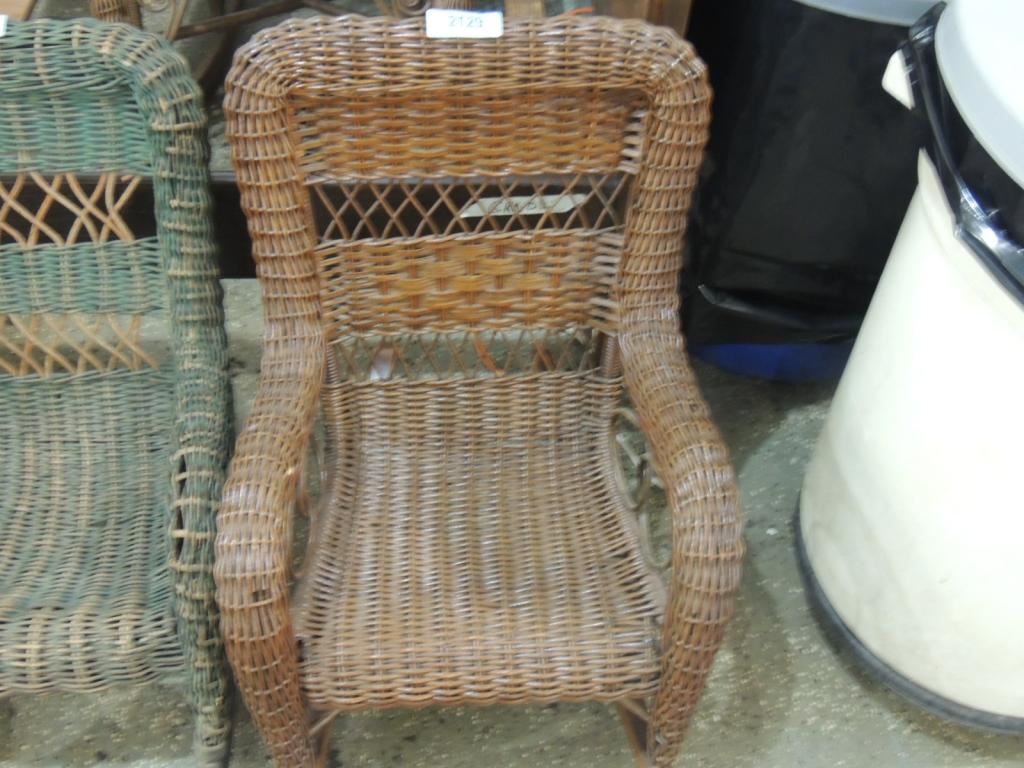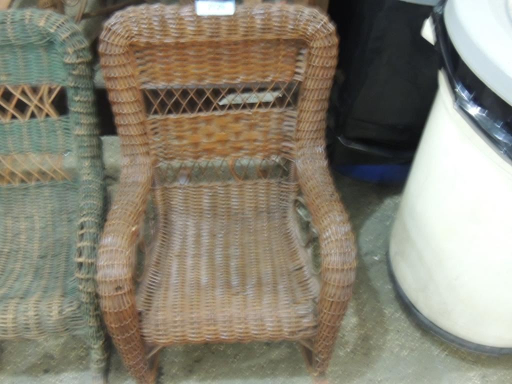 CHILDRENS WICKER CHAIR, VINTAGE CHAIR, COLLECTIBLE CHAIR, DECORATIVE AS SHOWN SEE PHOTO FOR MORE DETAILS.
