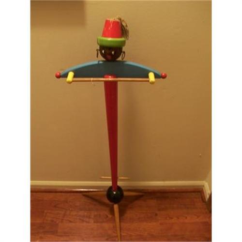 This is a really nice piece, a child's valet, purchased in Hungary. <P> The piece is vintage, from out of the 1920's to 1930's, not really sure of the exact year. <P> The valet is made of wood, and is really neat, the face is black, and is wearing a "fezz hat." <P> The piece is in really nice condition, has some loss of paint on the hat. <P> This is a very rare piece, a nice child's valet. and a great collectable item.