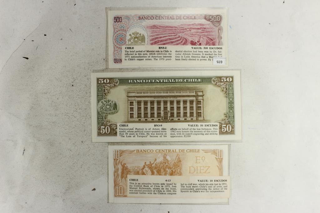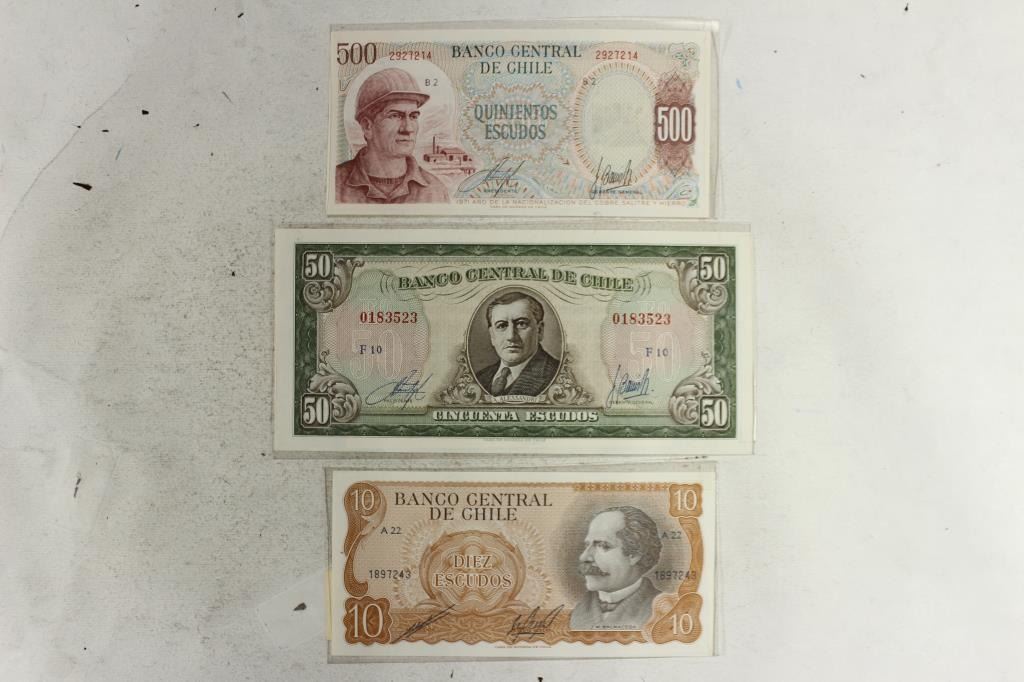 CHILE 10, 50 & 500 ESCUDOS CRISP UNC
