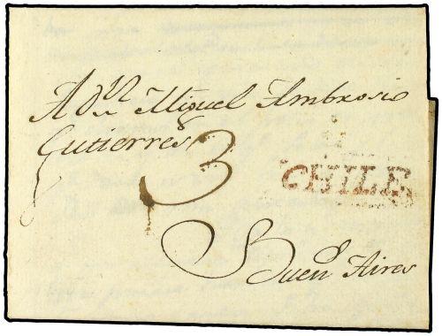 1810 (24-Febrero) SANTIAGO a BUENOS AIRES. Marca CHILE en rojo.