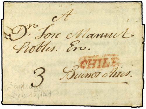 1814 (15-Septiembre) SANTIAGO a BUENOS AIRES. Marca CHILE en rojo.