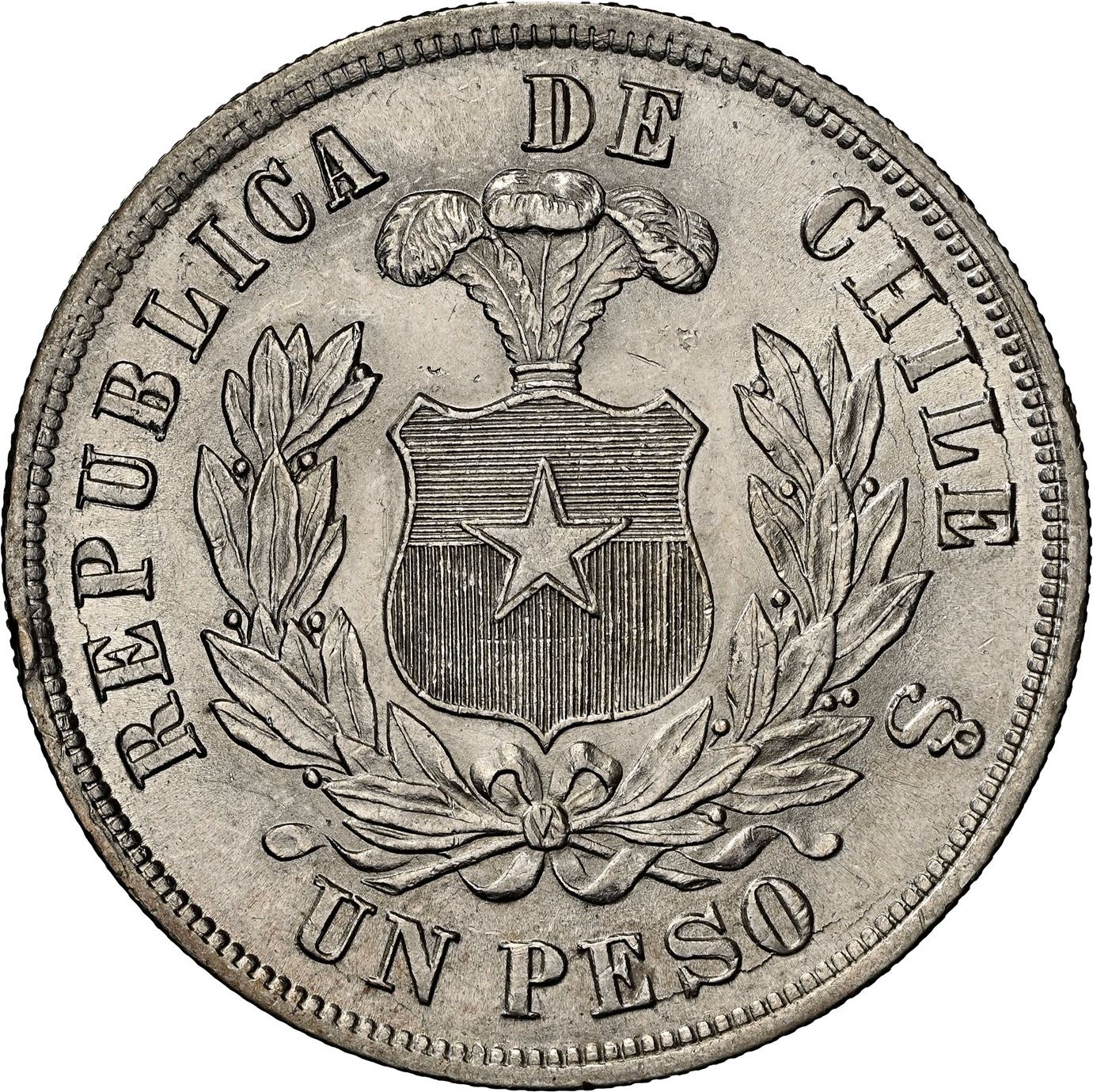 CHILE, Santiago, "condor" peso, 1885/3, NGC MS 63 (Colección Val y Mexía Label), "top pop." KM-142.1. Satin surfaces with brilliant cartwheel luster, minimal bagmarks, currently tied with two others for finest in the NGC census. Pedigreed to the Val y Mexía Collection.