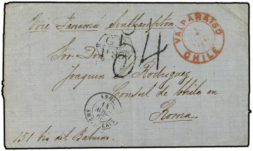 1867 VALPARAISO a ITALIA. Via Inglaterra y Francia. Marca de intercambio GB/1F 90c y rara tasa de "54".