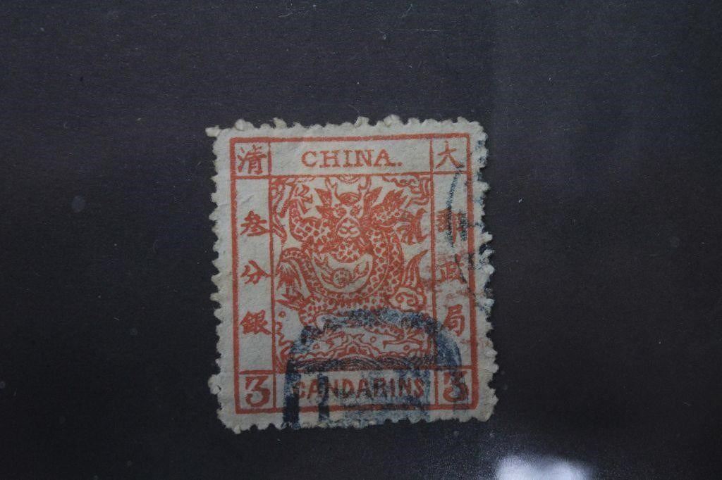 A CHINA #2 1878/83 Large Red Dragon 3 Candarins. A high demand stamp that runs more orange than the typical red/brown. Superb eye appeal for a VF stamp and a great non-extrusive cancel. HH-OM A great addition to any collection